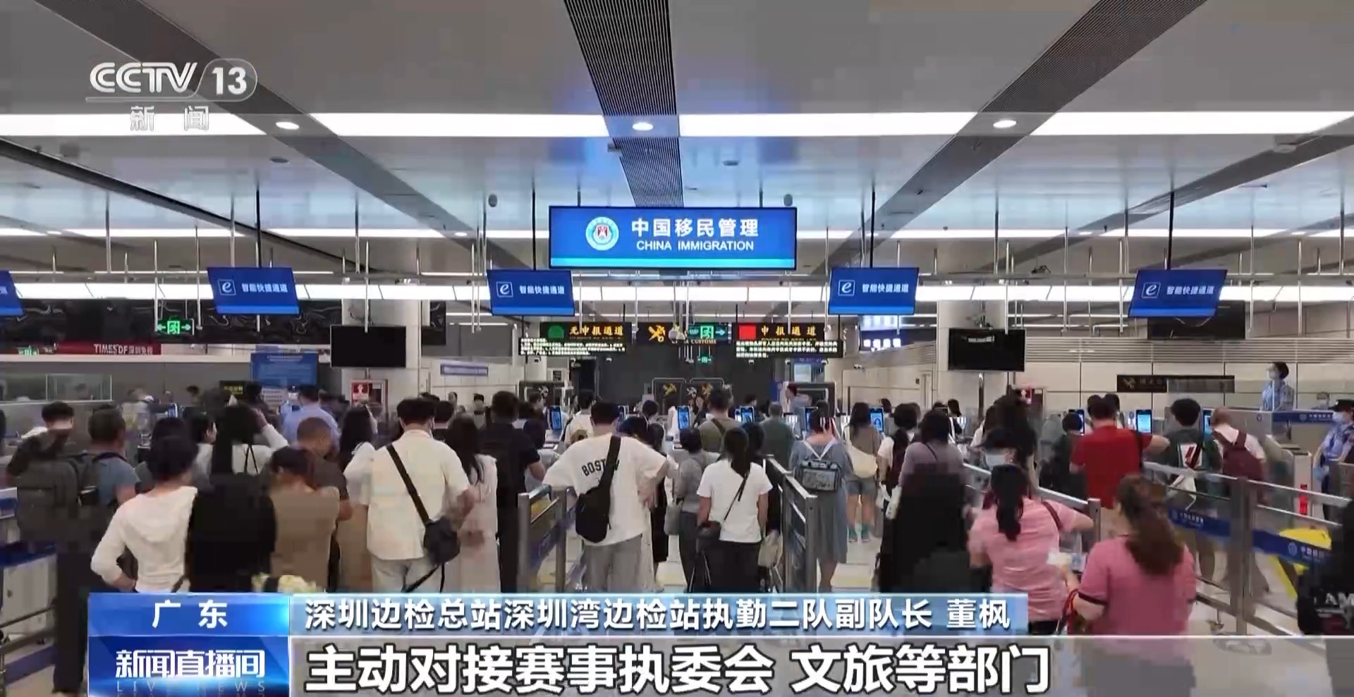 深圳边检总站深圳湾边检站执勤二队副队长 董枫:常态化设置十五运会专用通道,设立“专用通道”标识,引导赛事人员经专用通道通行;主动对接赛事执委会、文旅等相关部门,提前精准掌握参赛人员、物资通关情况,做实做细通关保障安排,实现口岸与赛场快速连通、无缝衔接;加强与口岸管理部门、志愿者团队等联动协作,健全应急服务机制,为证件遗失、赛程紧急、急需扶助人员提供行程引导、语言支持、遗失物寻找和紧急救助等服务。